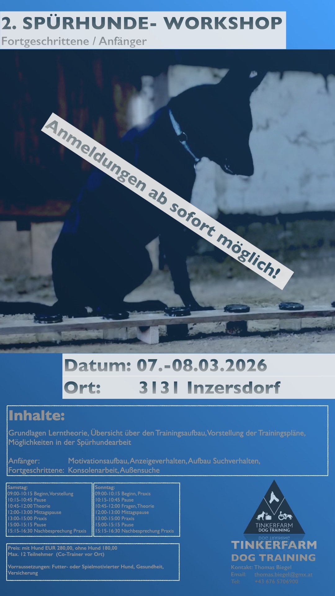 TINKERFARM DOG TRAINING umfasst ein Angebot an Hundetraining für den Alltag, speziell Welpen und Junghunde, Training für den Rettungshundebereich, Ausbildung von Spürhunden (in allen Bereichen), weiters Ausbildung von Assistenzhunden und Therapiebegleithunden.